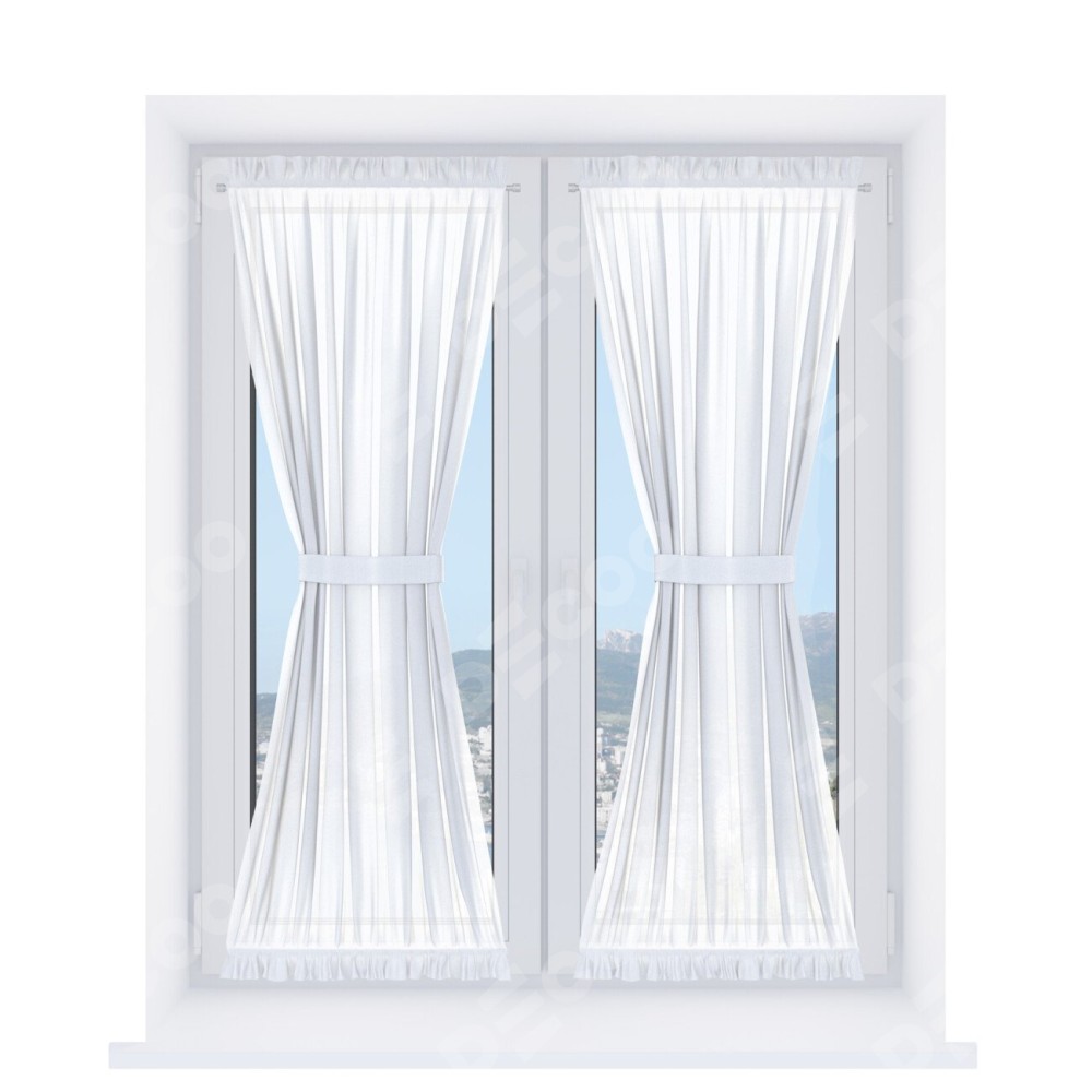 Штора «Песочные часы» производителя «Cortin», используется для створок окон и дверей, пошита из ткани лён белоснежный, артикул ткани 7438.