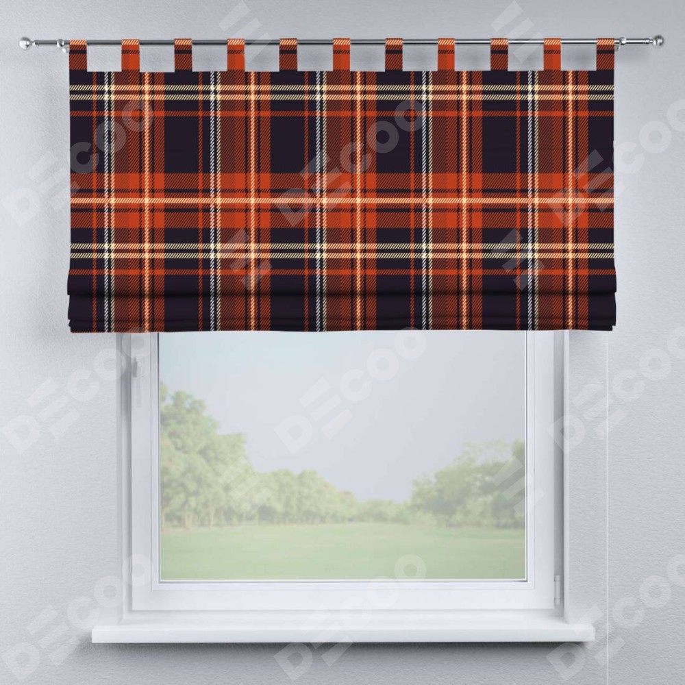Римская штора производителя «Cortin», используется для проёма, пошита из ткани блэкаут с нанесением сублимационной печати «Сине-оранжевая клетка». Данная модель пошита на петлях, комплектуется на выбор круглым карнизом и подходит для монтажа на стену. Римская штора на петлях имеет простую систему регулировки высоты, отличительным преимуществом данной модели является простой способ монтажа. Достаточно повесить ее на трубу и штора готова!