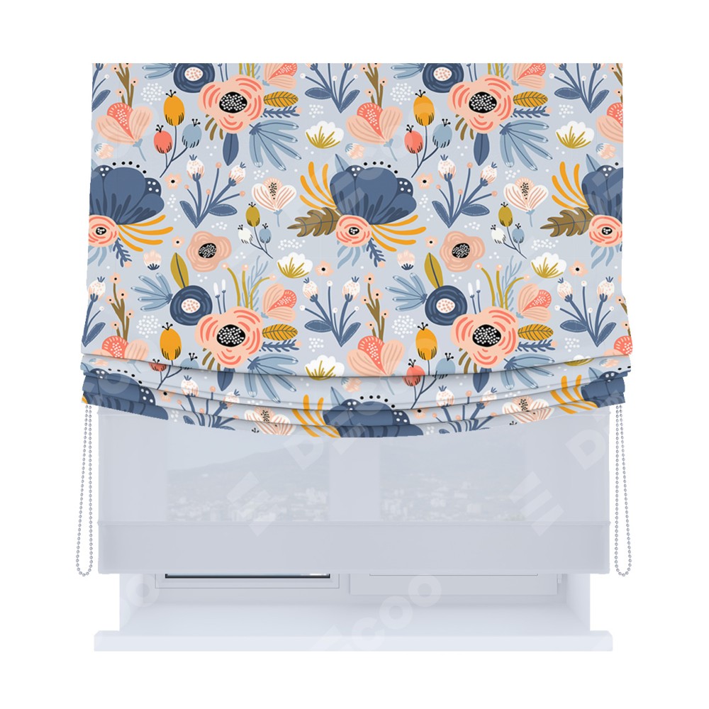 Римская штора день-ночь производителя «Cortin», используется для проёма, пошита из двух полотен, с лицевой блэкаут с нанесением сублимационной печати «Волшебные цветы», вторая ткань тюль (по стандарту комплектуется тюль белого цвета артикул V-01). Имеет универсальный механизм и подходит для монтажа: на потолок, на стену и в нишу. Удобное управление каждой шторой отдельно.