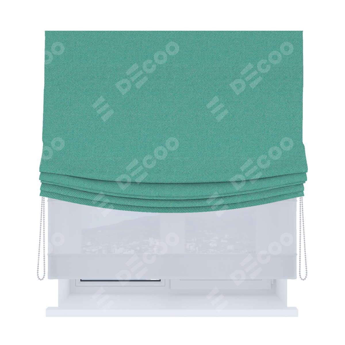 Римская штора «Кортин», день-ночь с мягкими складками, лён димаут бирюзовый