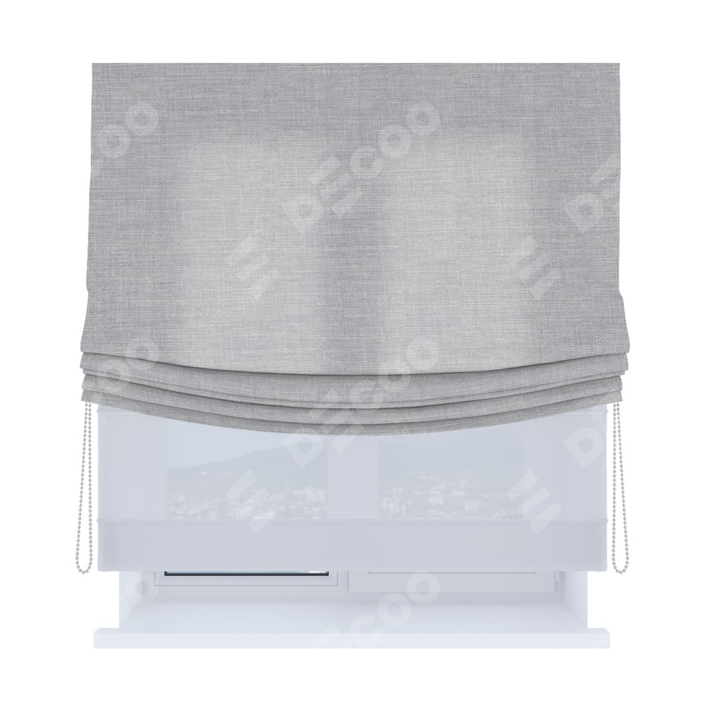 Римская штора день-ночь (двойная) от производителя «Cortin», используется для проёма. Пошита из двух полотен, основная ткань лён серый артикул 7440, вторая ткань тюль (по стандарту используется тюль белого цвета артикул V-01). Имеет универсальный механизм и подходит для монтажа: на потолок, на стену и в нишу. Удобное управление каждой шторой отдельно.
