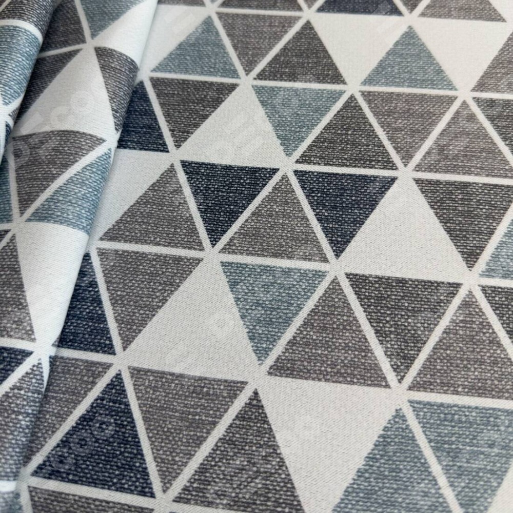 Римская штора «Кортин», система «Комфорт», димаут «Треугольники синие»