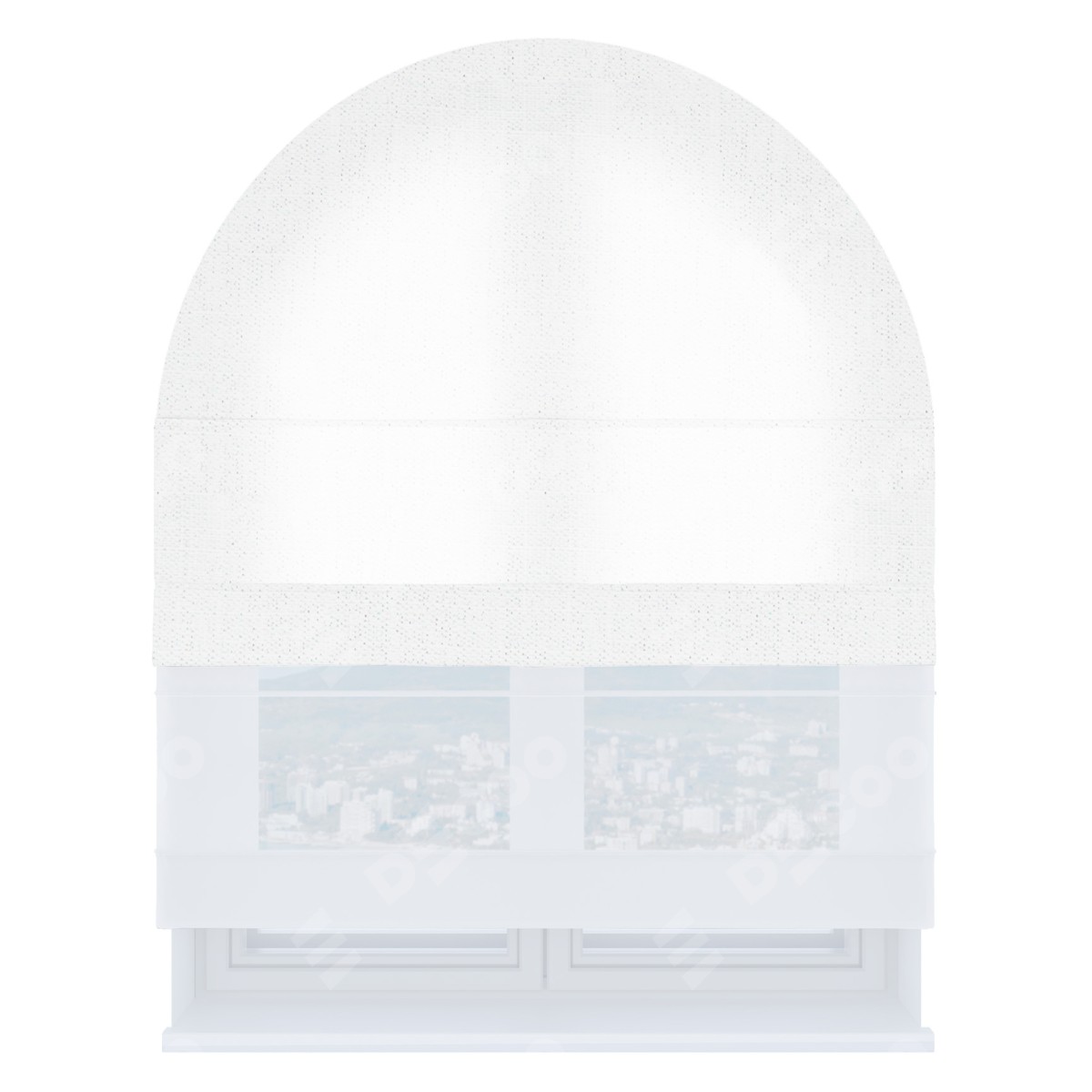 Римская штора день-ночь производителя «Cortin», используется для арочного проёма, пошита из двух полотен, с лицевой стороны лён белоснежный артикул 7438, вторая ткань тюль (по стандарту комплектуется тюль белого цвета артикул V-01). Штора шьётся по индивидуальным размерам, для данного типа римской шторы возможная ширина от 60 до 300 см. Удобное управление каждой шторой отдельно.