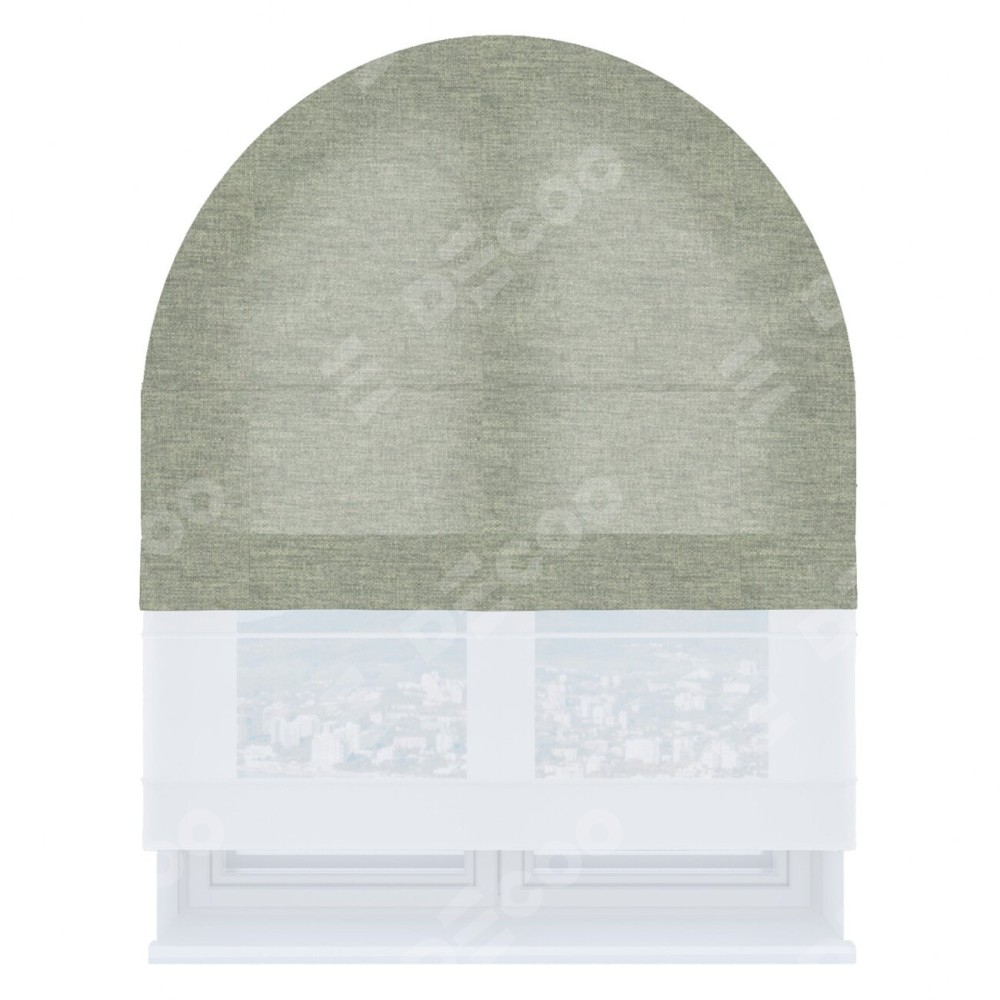 Римская штора день-ночь производителя «Cortin», используется для арочного проёма, пошита из двух полотен, с лицевой стороны лён кашемир серый new артикул 21618, вторая ткань тюль (по стандарту комплектуется тюль белого цвета артикул V-01). Штора шьётся по индивидуальным размерам, для данного типа римской шторы возможная ширина от 60 до 300 см. Удобное управление каждой шторой отдельно.