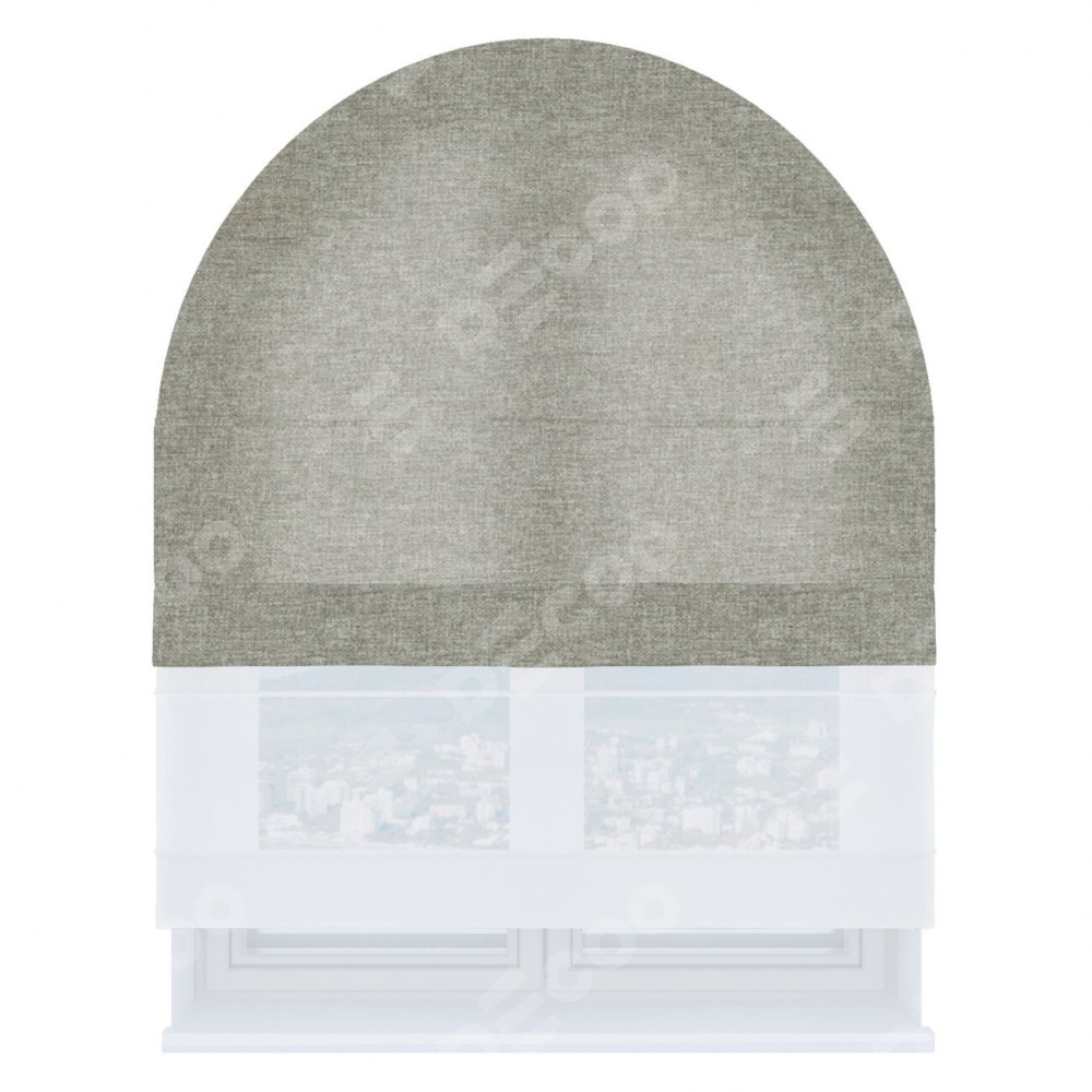 Римская штора день-ночь производителя «Cortin», используется для арочного проёма, пошита из двух полотен, с лицевой стороны лён кашемир серый артикул 17208, вторая ткань тюль (по стандарту комплектуется тюль белого цвета артикул V-01). Штора шьётся по индивидуальным размерам, для данного типа римской шторы возможная ширина от 60 до 300 см. Удобное управление каждой шторой отдельно.