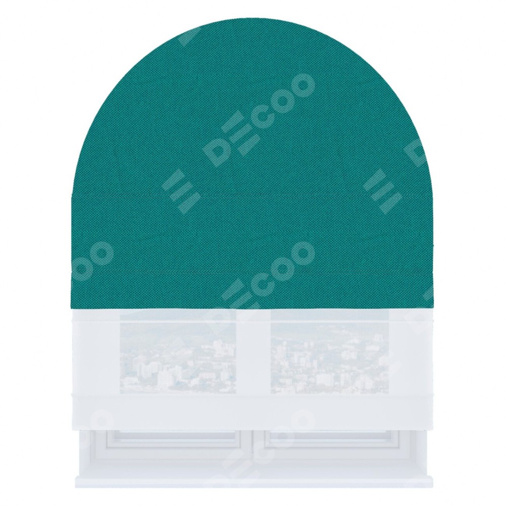 Римская штора день-ночь производителя «Cortin», используется для арочного проёма, пошита из двух полотен, с лицевой стороны лён димаут тёмно-бирюзовый артикул 318, вторая ткань тюль (по стандарту комплектуется тюль белого цвета артикул V-01). Штора шьётся по индивидуальным размерам, для данного типа римской шторы возможная ширина от 60 до 300 см. Удобное управление каждой шторой отдельно.