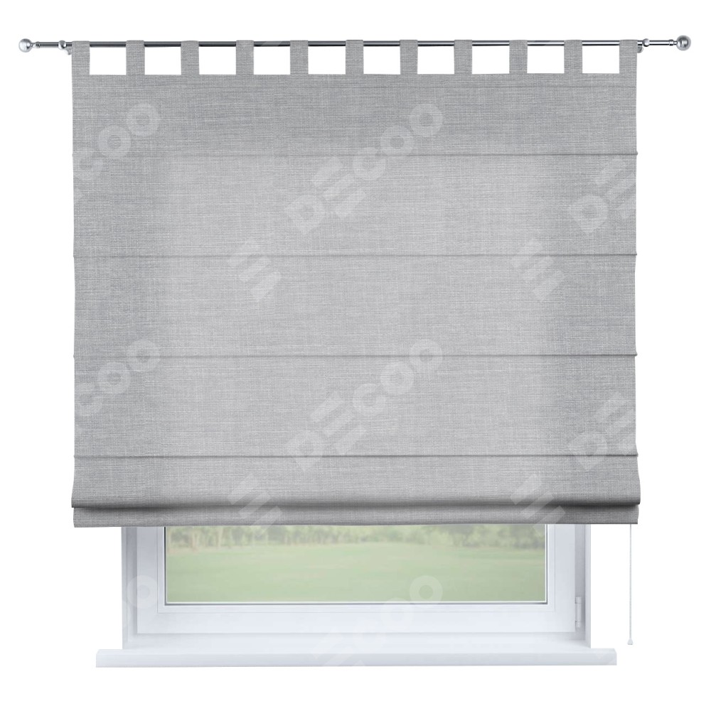 Римская штора производителя «Cortin», используется для проёма, пошита из ткани лён серый, артикул ткани 7440. Данная модель пошита на петлях, комплектуется на выбор круглым карнизом и подходит для монтажа на стену. Римская штора на петлях имеет простую систему регулировки высоты, отличительным преимуществом данной модели является простой способ монтажа. Достаточно повесить ее на трубу и штора готова!