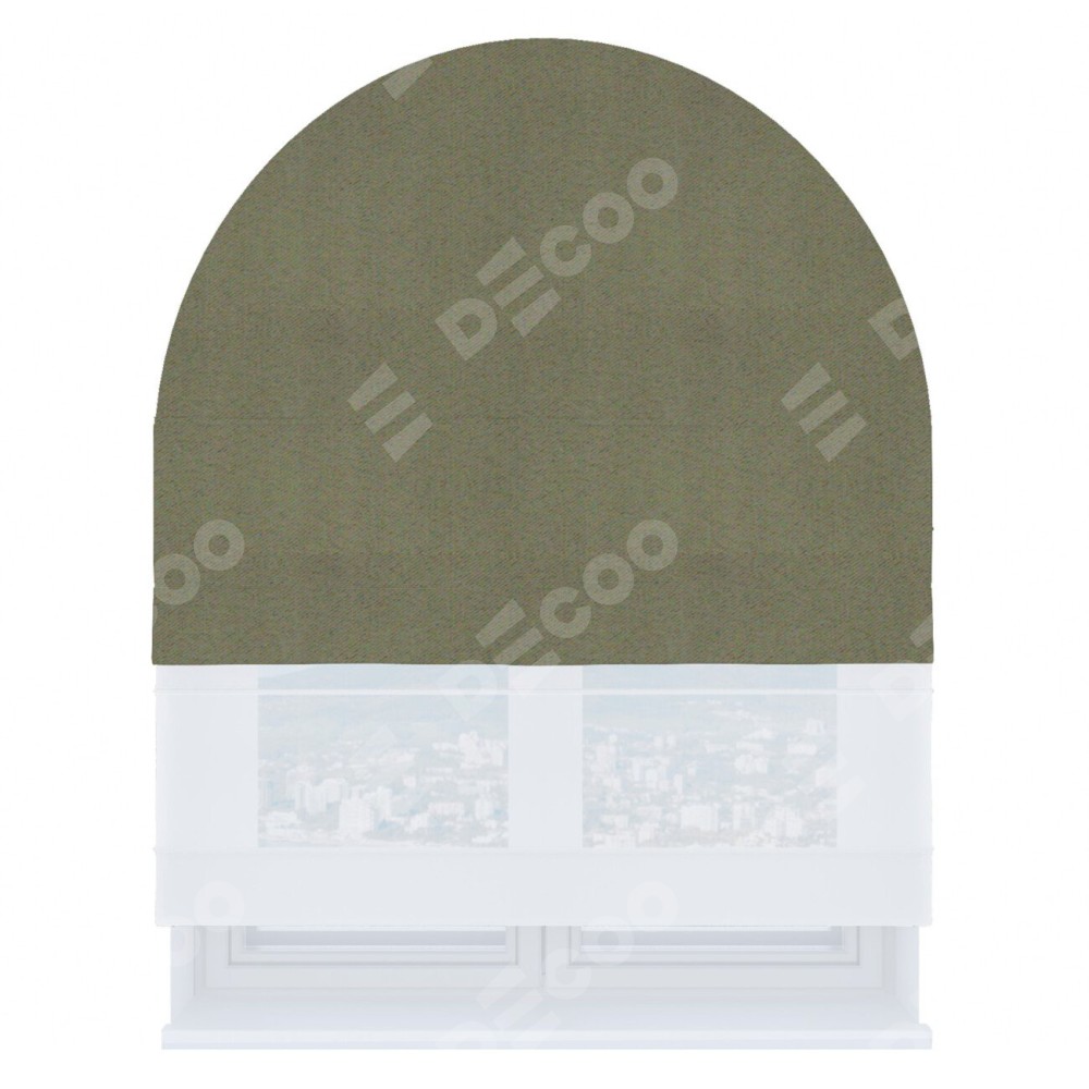 Римская штора день-ночь производителя «Cortin», используется для арочного проёма, пошита из двух полотен, с лицевой стороны блэкаут однотонный серо-коричневый артикул 29568, вторая ткань тюль (по стандарту комплектуется тюль белого цвета артикул V-01). Штора шьётся по индивидуальным размерам, для данного типа римской шторы возможная ширина от 60 до 300 см. Удобное управление каждой шторой отдельно.