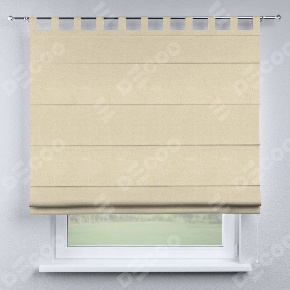 Римская штора производителя «Cortin», используется для проёма, пошита из ткани блэкаут однотонный бежевый, артикул ткани 13125. Данная модель пошита на петлях, комплектуется на выбор круглым карнизом и подходит для монтажа на стену. Римская штора на петлях имеет простую систему регулировки высоты, отличительным преимуществом данной модели является простой способ монтажа. Достаточно повесить ее на трубу и штора готова!