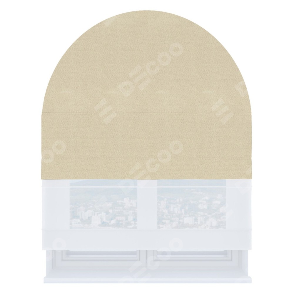 Римская штора день-ночь производителя «Cortin», используется для арочного проёма, пошита из двух полотен, с лицевой стороны блэкаут однотонный бежевый артикул 13125, вторая ткань тюль (по стандарту комплектуется тюль белого цвета артикул V-01). Штора шьётся по индивидуальным размерам, для данного типа римской шторы возможная ширина от 60 до 300 см. Удобное управление каждой шторой отдельно.