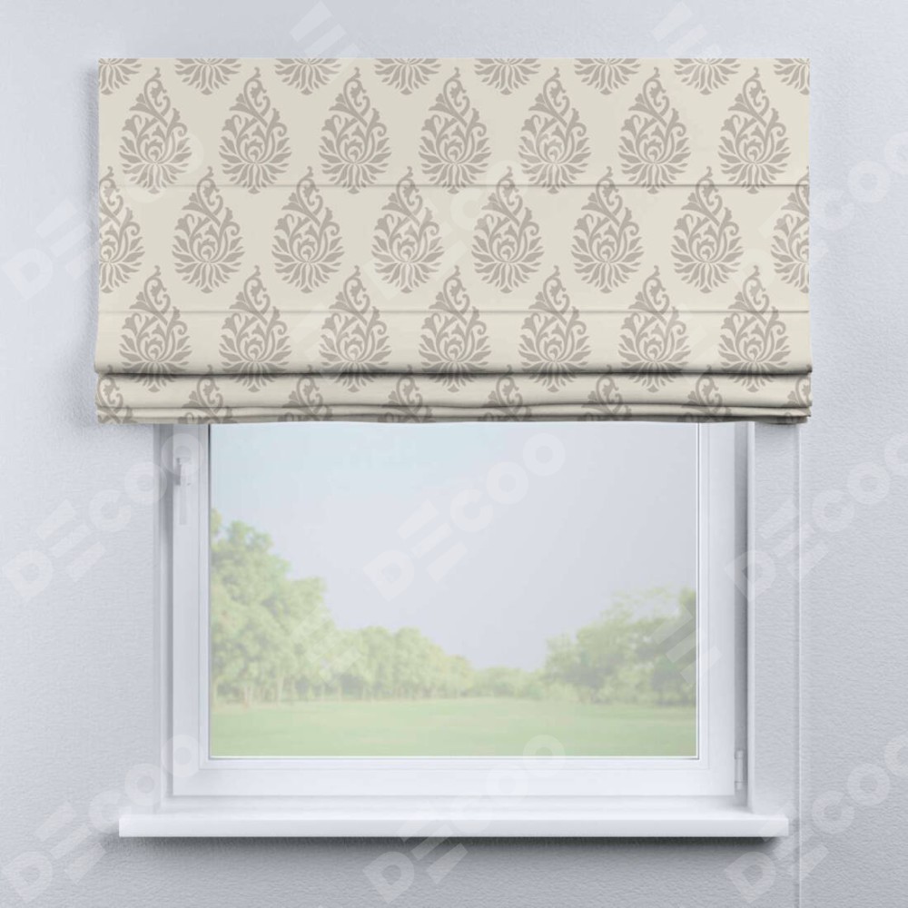 Римская штора производителя «Cortin», используется для проёма, пошита из ткани блэкаут с нанесением сублимационной печати «Изящный кулон». Имеет универсальный механизм и подходит для монтажа: на потолок, на стену и в нишу.