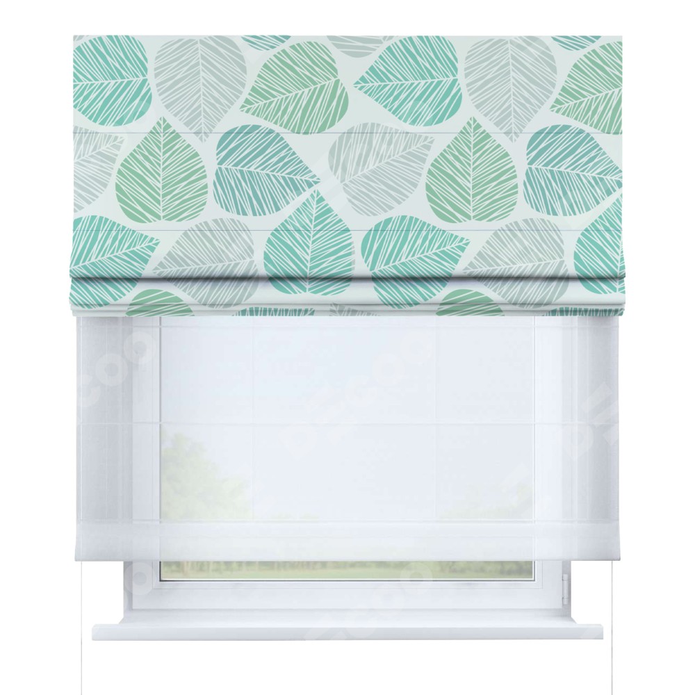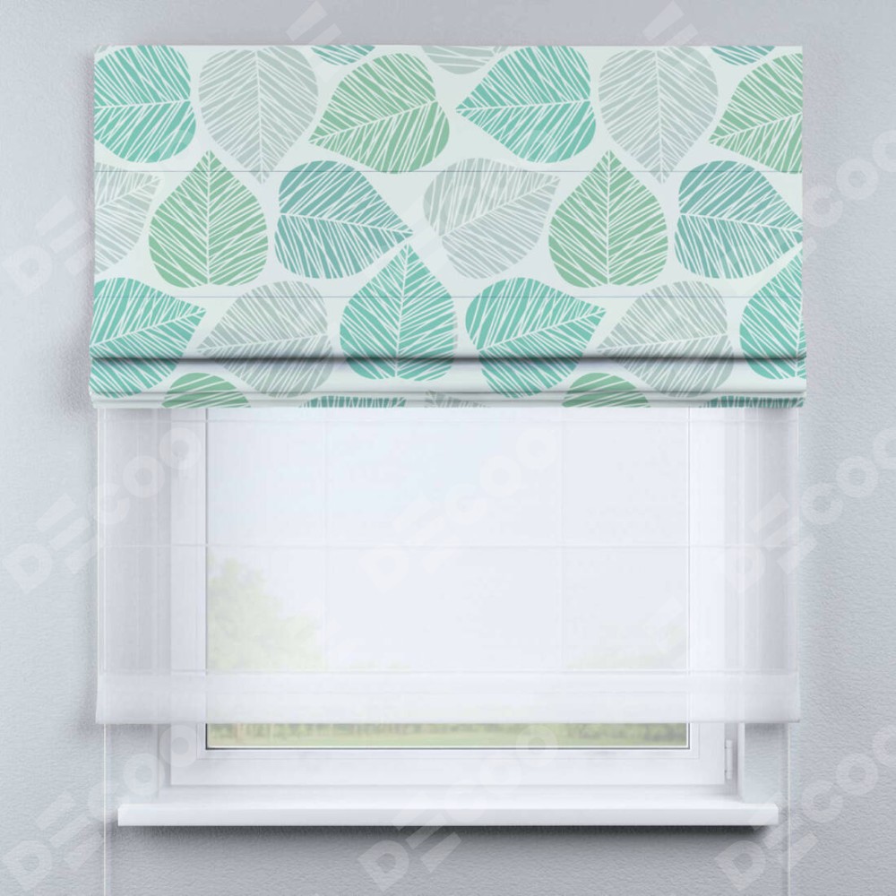 Римская штора день-ночь производителя «Cortin», используется для проёма, пошита из двух полотен, с лицевой блэкаут с нанесением сублимационной печати «Весенняя листва», вторая ткань тюль (по стандарту комплектуется тюль белого цвета артикул V-01). Имеет универсальный механизм и подходит для монтажа: на потолок, на стену и в нишу.