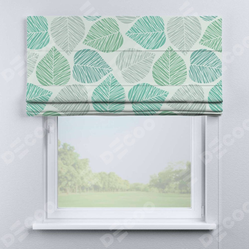 Римская штора производителя «Cortin», используется для проёма, пошита из ткани блэкаут с нанесением сублимационной печати «Весенняя листва». Имеет универсальный механизм и подходит для монтажа: на потолок, на стену и в нишу.