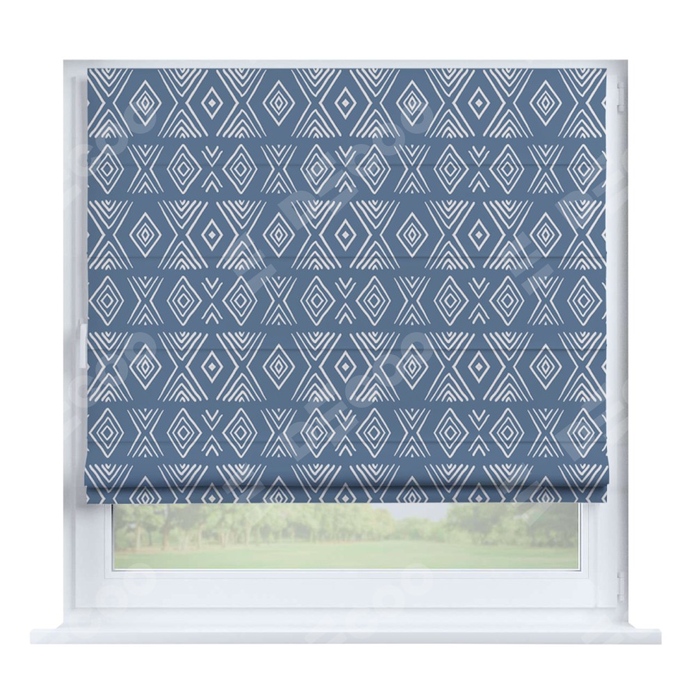 Римская штора производителя «Cortin», устанавливается на створку окна, пошита из ткани блэкаут с нанесением сублимационной печати «Графический орнамент». Штора шьётся по индивидуальным размерам, для данного типа римской шторы возможная ширина от 35 до 150 см., высота до 250 см.