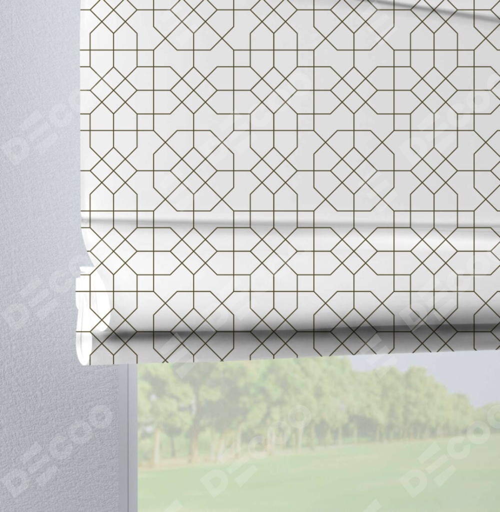 Римская штора производителя «Cortin», используется для проёма, пошита из ткани блэкаут с нанесением сублимационной печати «Орнамент из тонких линий». Данная модель пошита на петлях, комплектуется на выбор круглым карнизом и подходит для монтажа на стену. Римская штора на петлях имеет простую систему регулировки высоты, отличительным преимуществом данной модели является простой способ монтажа. Достаточно повесить ее на трубу и штора готова!