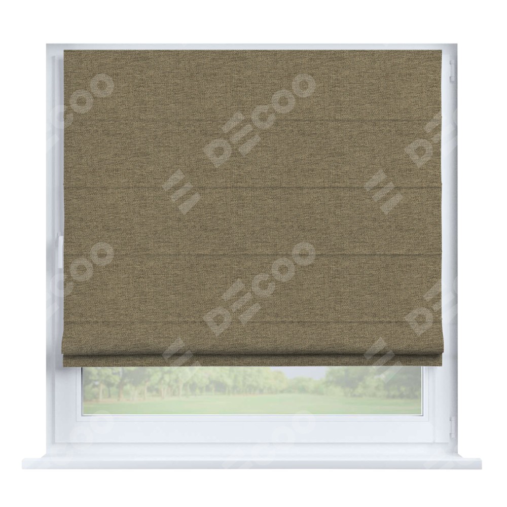 Римская штора производителя «Cortin», устанавливается на створку окна, пошита из ткани стиф димаут тёмно-бежевый, артикул 18085. Штора шьётся по индивидуальным размерам, для данного типа римской шторы возможная ширина от 35 до 150 см., высота до 250 см.