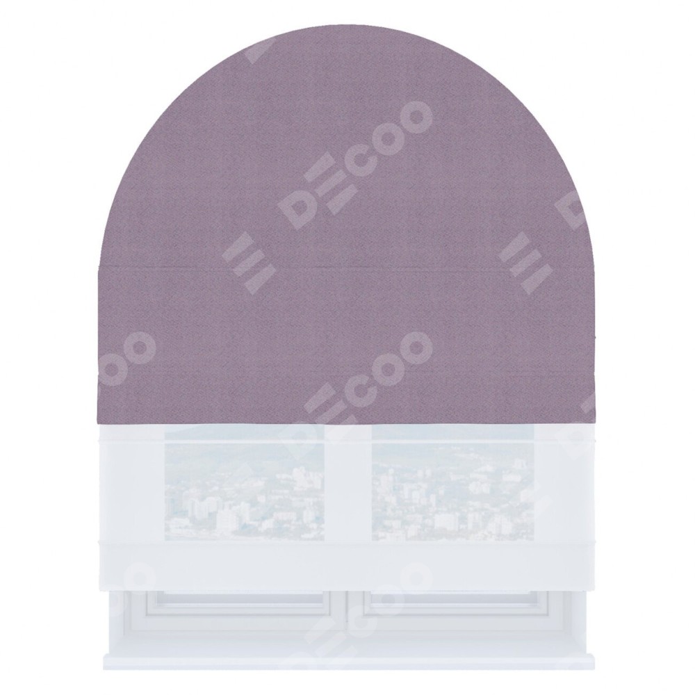 Римская штора день-ночь производителя «Cortin», используется для арочного проёма, пошита из двух полотен, с лицевой стороны блэкаут однотонный светло-сиреневый артикул 29333−1, вторая ткань тюль (по стандарту комплектуется тюль белого цвета артикул V-01). Штора шьётся по индивидуальным размерам, для данного типа римской шторы возможная ширина от 60 до 300 см. Удобное управление каждой шторой отдельно.