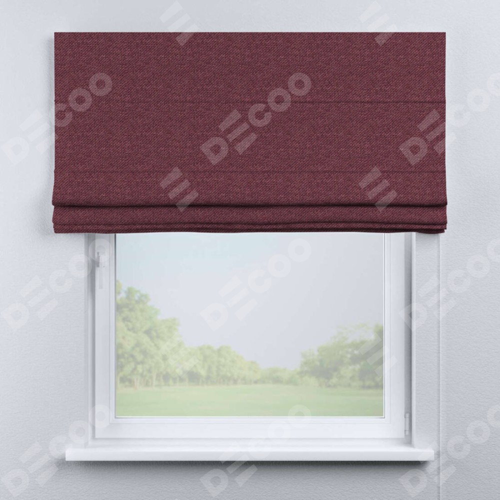 Римская штора производителя «Cortin», используется для проёма, пошита из ткани лён димаут марсала, артикул ткани 1602. Имеет универсальный механизм и подходит для монтажа: на потолок, на стену и в нишу.
