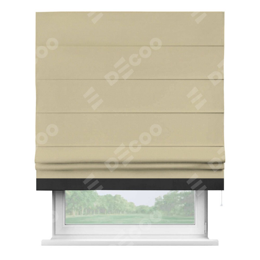 Римская штора производителя «Cortin», используется для проёма, пошита из ткани блэкаут однотонный кофейный, артикул ткани 13130. Отделка шторы кантом «Джестер», ткань для канта используется из блэкаута однотонного разной расцветки на выбор. Имеет универсальный механизм и подходит для монтажа: на потолок, на стену и в нишу.