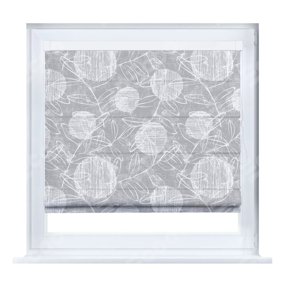 Римская штора производителя «Cortin», устанавливается на створку окна, пошита из ткани блэкаут с нанесением сублимационной печати «Серо-белая фантазия». Штора шьётся по индивидуальным размерам, для данного типа римской шторы возможная ширина от 35 до 150 см., высота до 250 см.