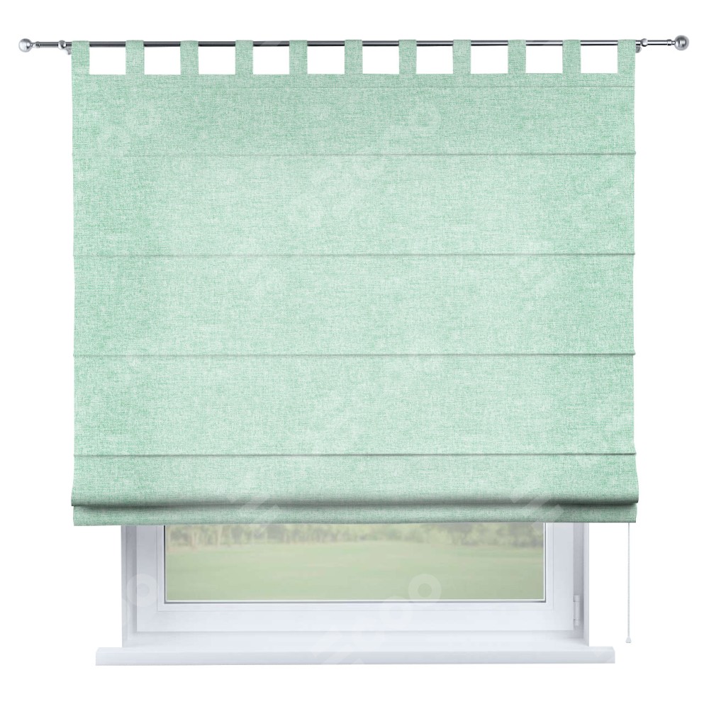 Римская штора производителя «Cortin», используется для проёма, пошита из ткани лён кашемир мятный, артикул ткани 21617. Данная модель пошита на петлях, комплектуется на выбор круглым карнизом и подходит для монтажа на стену. Римская штора на петлях имеет простую систему регулировки высоты, отличительным преимуществом данной модели является простой способ монтажа. Достаточно повесить ее на трубу и штора готова!