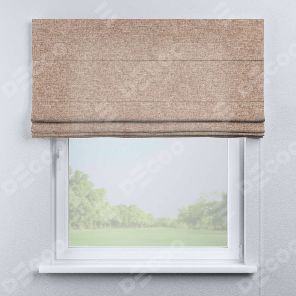 Римская штора производителя «Cortin», используется для проёма, пошита из ткани лён кашемир розовая пудра, артикул ткани 21619. Имеет универсальный механизм и подходит для монтажа: на потолок, на стену и в нишу.