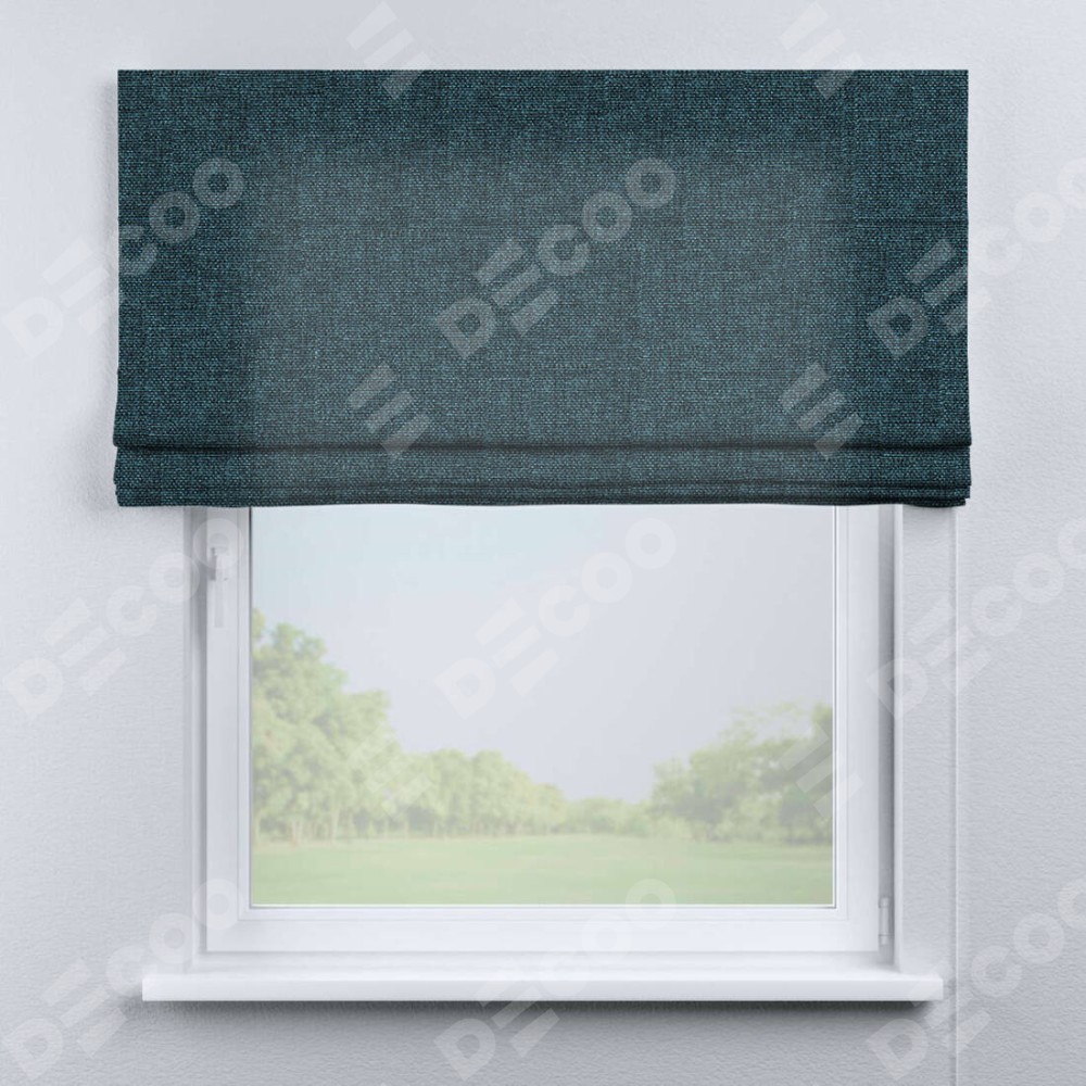 Римская штора производителя «Cortin», используется для проёма, пошита из ткани лён кашемир синий, артикул ткани 21623. Имеет универсальный механизм и подходит для монтажа: на потолок, на стену и в нишу.