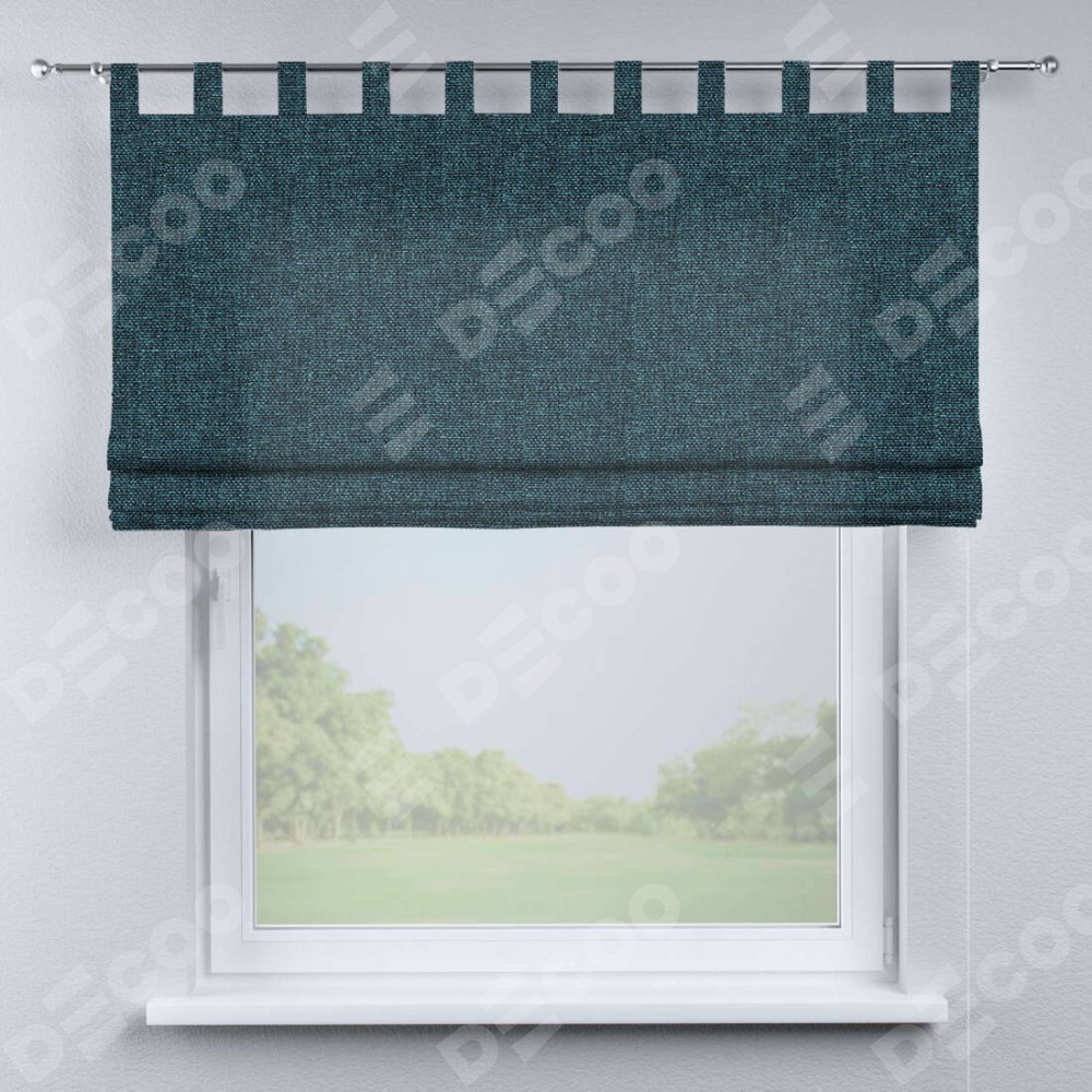 Римская штора производителя «Cortin», используется для проёма, пошита из ткани лён кашемир синий, артикул ткани 21623. Данная модель пошита на петлях, комплектуется на выбор круглым карнизом и подходит для монтажа на стену. Римская штора на петлях имеет простую систему регулировки высоты, отличительным преимуществом данной модели является простой способ монтажа. Достаточно повесить ее на трубу и штора готова!