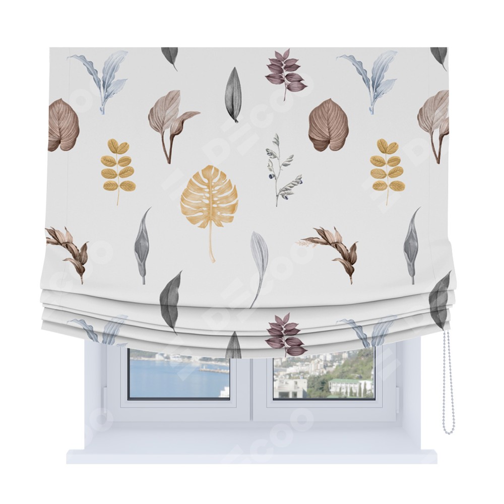 Римская штора Soft производителя «Cortin», используется для проёма, пошита из ткани блэкаут с нанесением сублимационной печати «Осенний коллаж». Имеет универсальный механизм и подходит для монтажа: на потолок, на стену и в нишу. В отличие от стандартных римских штор, римская штора Soft не имеет горизонтальных вставок и нижнего отвеса. Это позволяет ткани произвольно драпироваться в свободные мягкие складки.