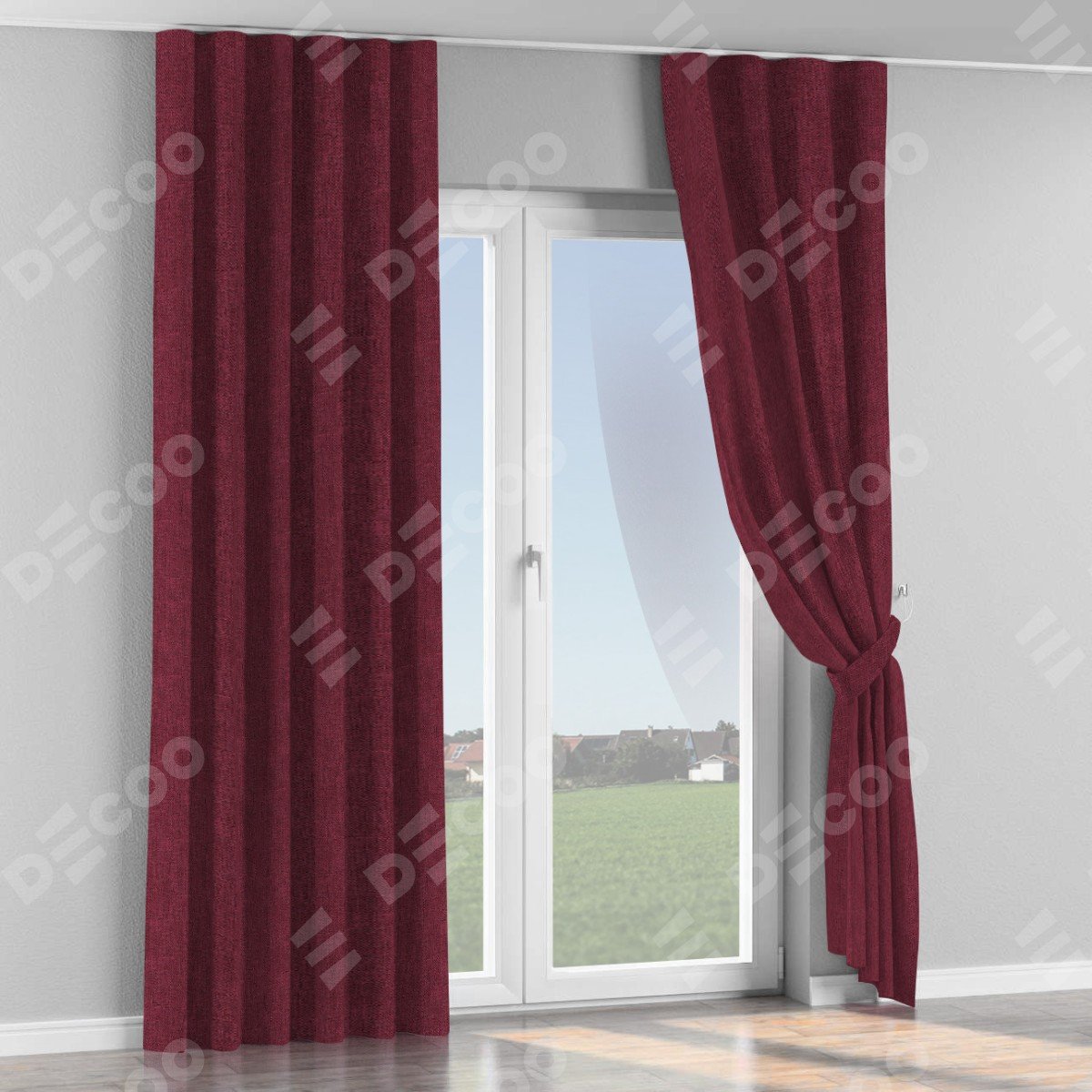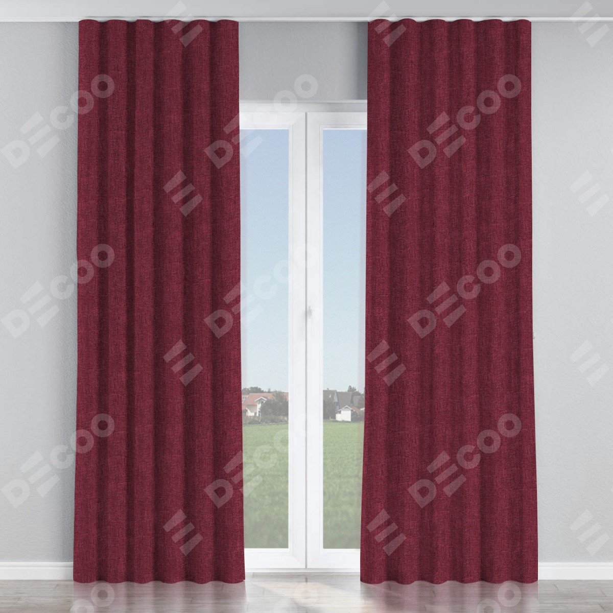 Комплект прямых штор, от производителя «Cortin», пошиты из ткани лён кашемир бордовый, артикул ткани 21621. С изнаночной стороны в верхней части штор пристрачивается шторная лента с декоративными складками «Волна». Для создания элегантных складок прямые шторы шьются по стандарту с коэффициентом 1:2 (на 100 см. ширины проёма 200 см. ширины ткани).