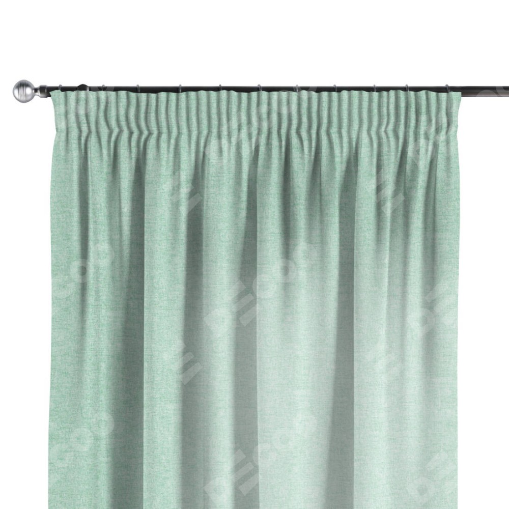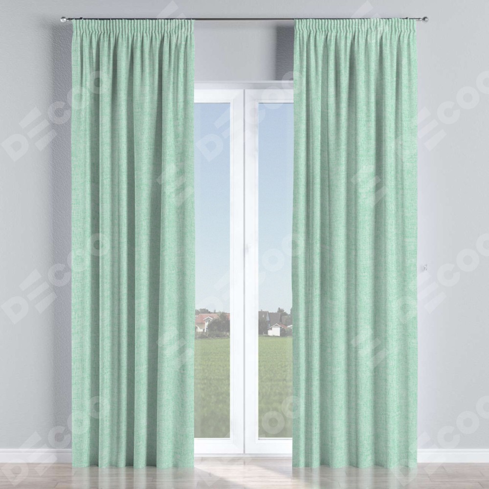 Комплект прямых штор, от производителя «Cortin», пошиты из ткани лён кашемир мятный, артикул ткани 21617. С изнаночной стороны в верхней части штор пристрачивается шторная лента с декоративными складками «Карандаш». Для создания элегантных складок прямые шторы шьются по стандарту с коэффициентом 1:2 (на 100 см. ширины проёма 200 см. ширины ткани).