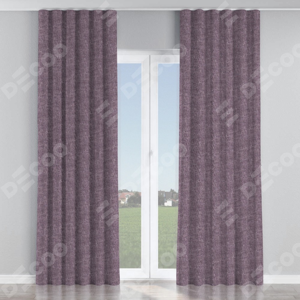 Комплект прямых штор, от производителя «Cortin», пошиты из ткани лён кашемир фиолетовый, артикул ткани 17211. С изнаночной стороны в верхней части штор пристрачивается шторная лента с декоративными складками «Волна». Для создания элегантных складок прямые шторы шьются по стандарту с коэффициентом 1:2 (на 100 см. ширины проёма 200 см. ширины ткани).