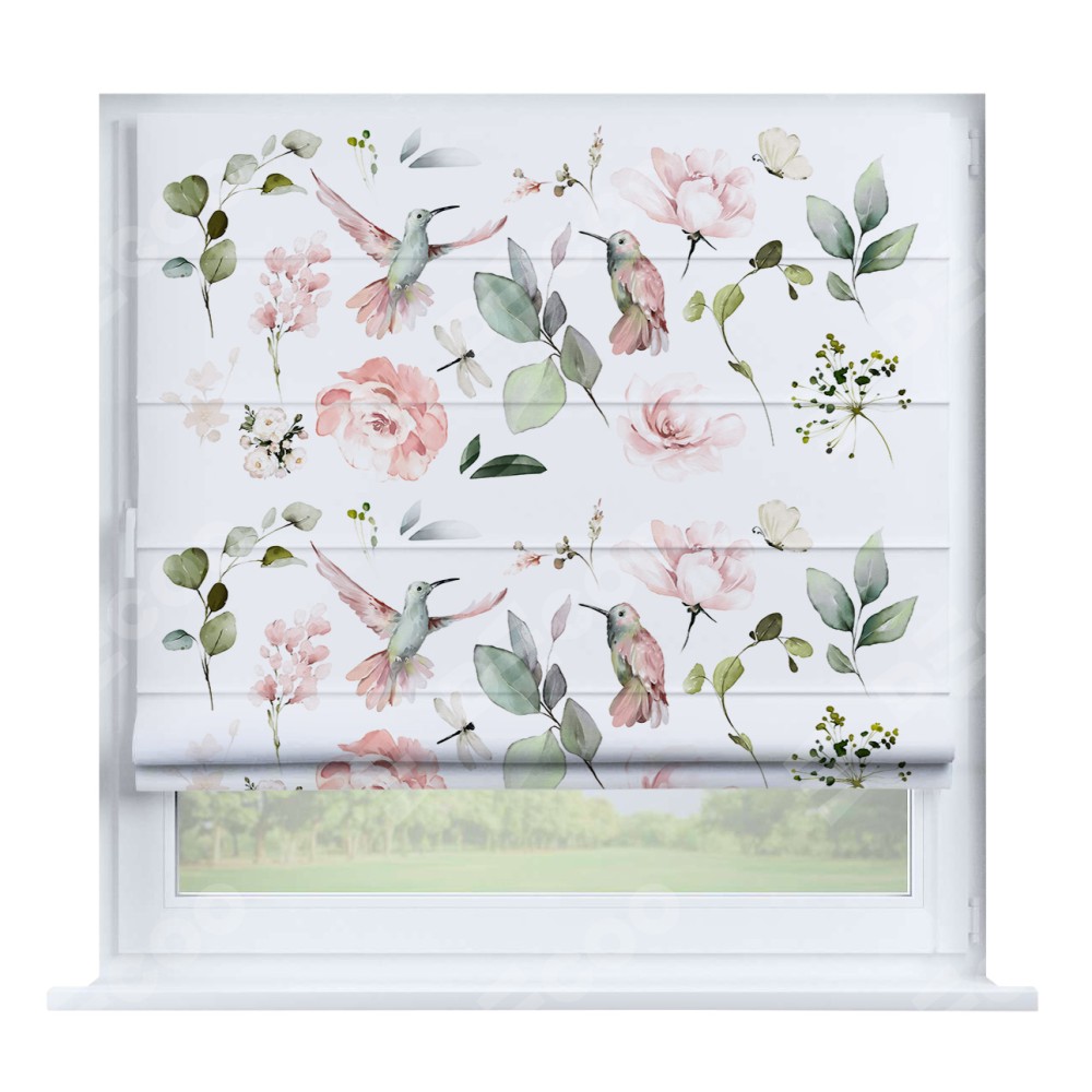 Римская штора производителя «Cortin», устанавливается на створку окна, пошита из ткани блэкаут с нанесением сублимационной печати «Уютный сад». Штора шьётся по индивидуальным размерам, для данного типа римской шторы возможная ширина от 35 до 150 см., высота до 250 см.