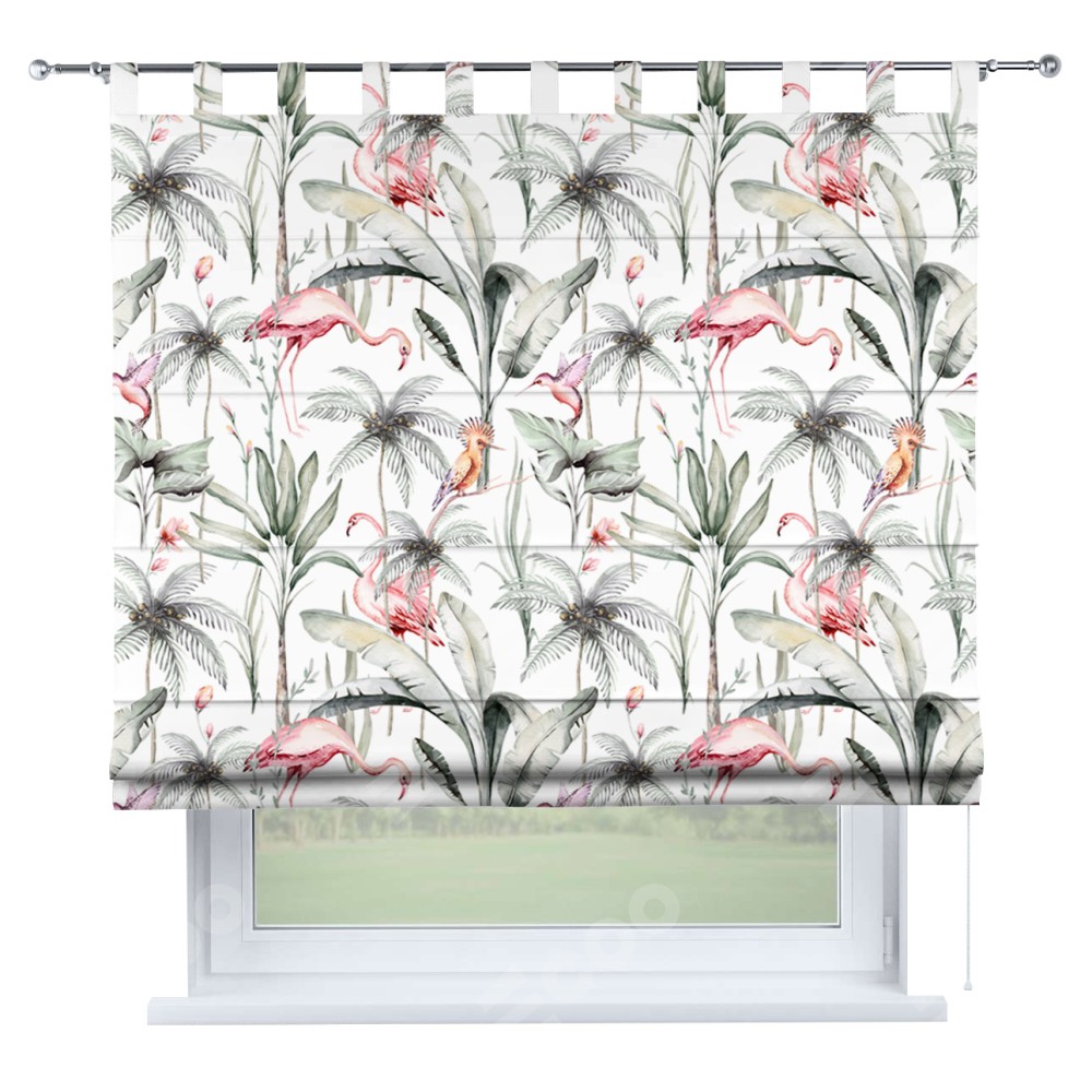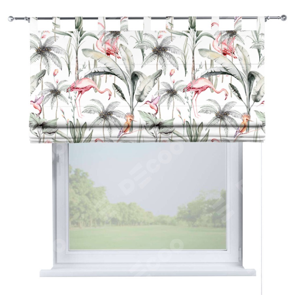 Римская штора производителя «Cortin», используется для проёма, пошита из ткани блэкаут с нанесением сублимационной печати «Изящные фламинго». Данная модель пошита на петлях, комплектуется на выбор круглым карнизом и подходит для монтажа на стену. Римская штора на петлях имеет простую систему регулировки высоты, отличительным преимуществом данной модели является простой способ монтажа. Достаточно повесить ее на трубу и штора готова!