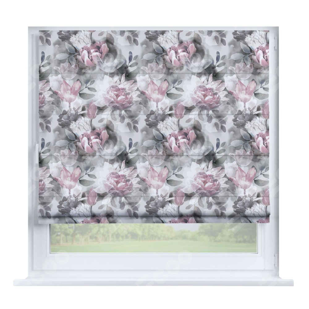 Римская штора производителя «Cortin», устанавливается на створку окна, пошита из ткани блэкаут с нанесением сублимационной печати «Цветочная композиция». Штора шьётся по индивидуальным размерам, для данного типа римской шторы возможная ширина от 35 до 150 см., высота до 250 см.