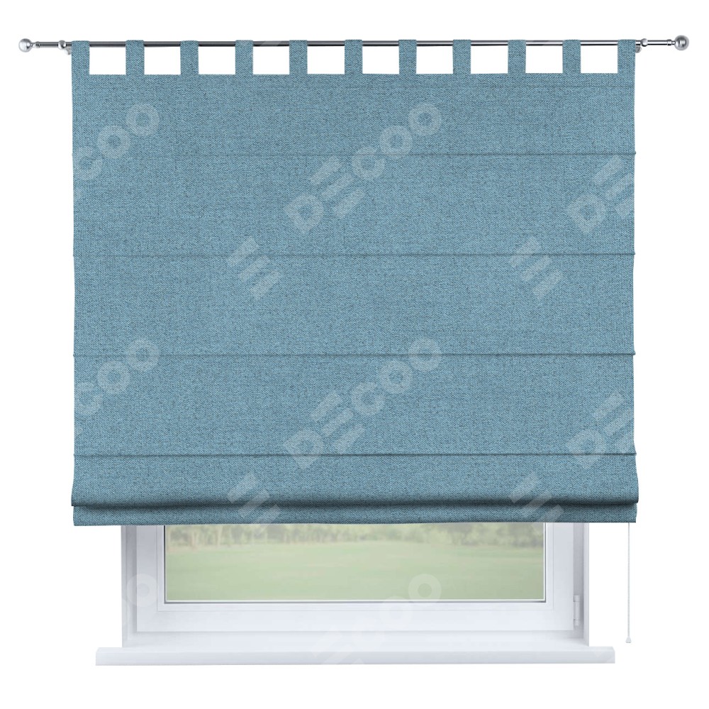 Римская штора производителя «Cortin», используется для проёма, пошита из ткани лён блэкаут голубой, артикул ткани 69574. Данная модель пошита на петлях, комплектуется на выбор круглым карнизом и подходит для монтажа на стену. Римская штора на петлях имеет простую систему регулировки высоты, отличительным преимуществом данной модели является простой способ монтажа. Достаточно повесить ее на трубу и штора готова!