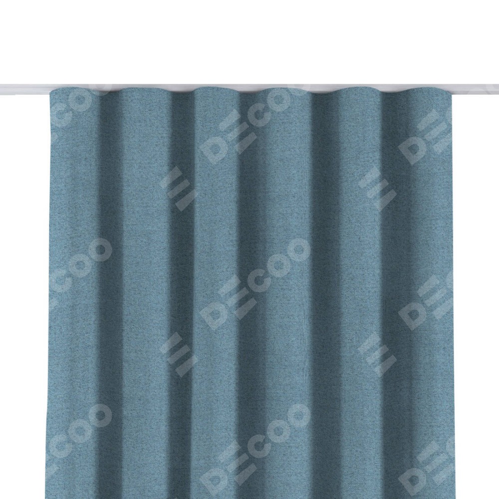 Комплект прямых штор, от производителя «Cortin», пошиты из ткани лён блэкаут голубой, артикул ткани 69574. С изнаночной стороны в верхней части штор пристрачивается шторная лента с декоративными складками «Волна». Для создания элегантных складок прямые шторы шьются по стандарту с коэффициентом 1:2 (на 100 см. ширины проёма 200 см. ширины ткани).