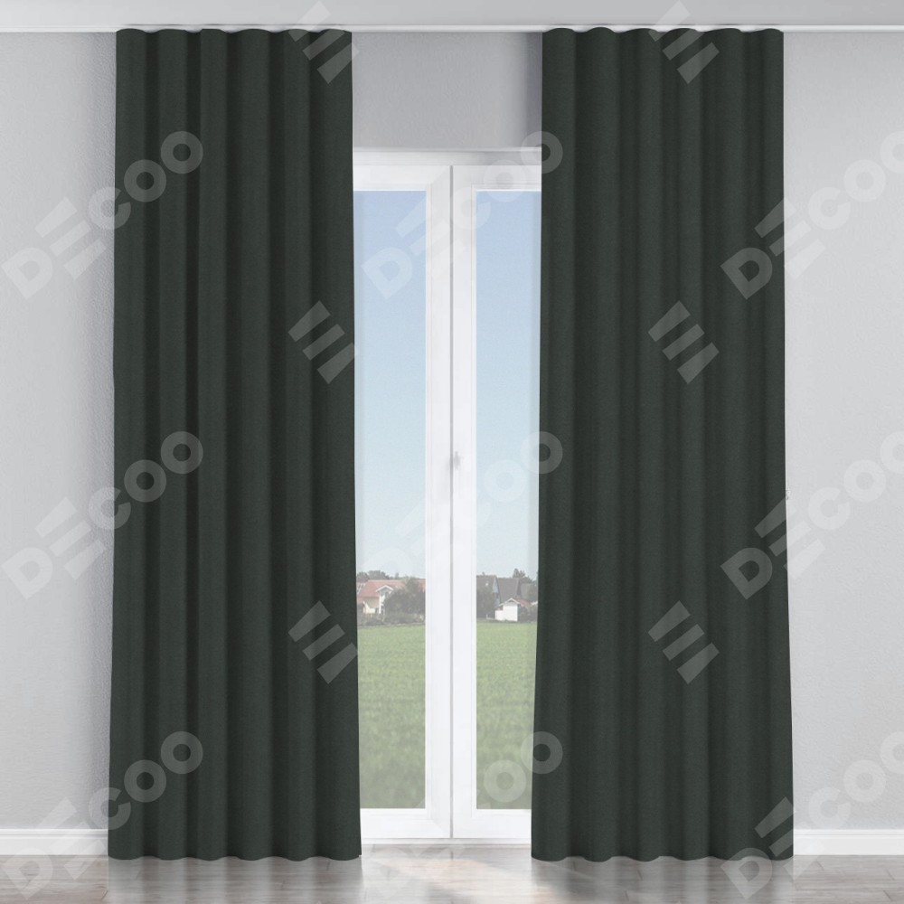 Комплект прямых штор, от производителя «Cortin», пошиты из ткани лён блэкаут графит, артикул ткани 69448. С изнаночной стороны в верхней части штор пристрачивается шторная лента с декоративными складками «Волна». Для создания элегантных складок прямые шторы шьются по стандарту с коэффициентом 1:2 (на 100 см. ширины проёма 200 см. ширины ткани).