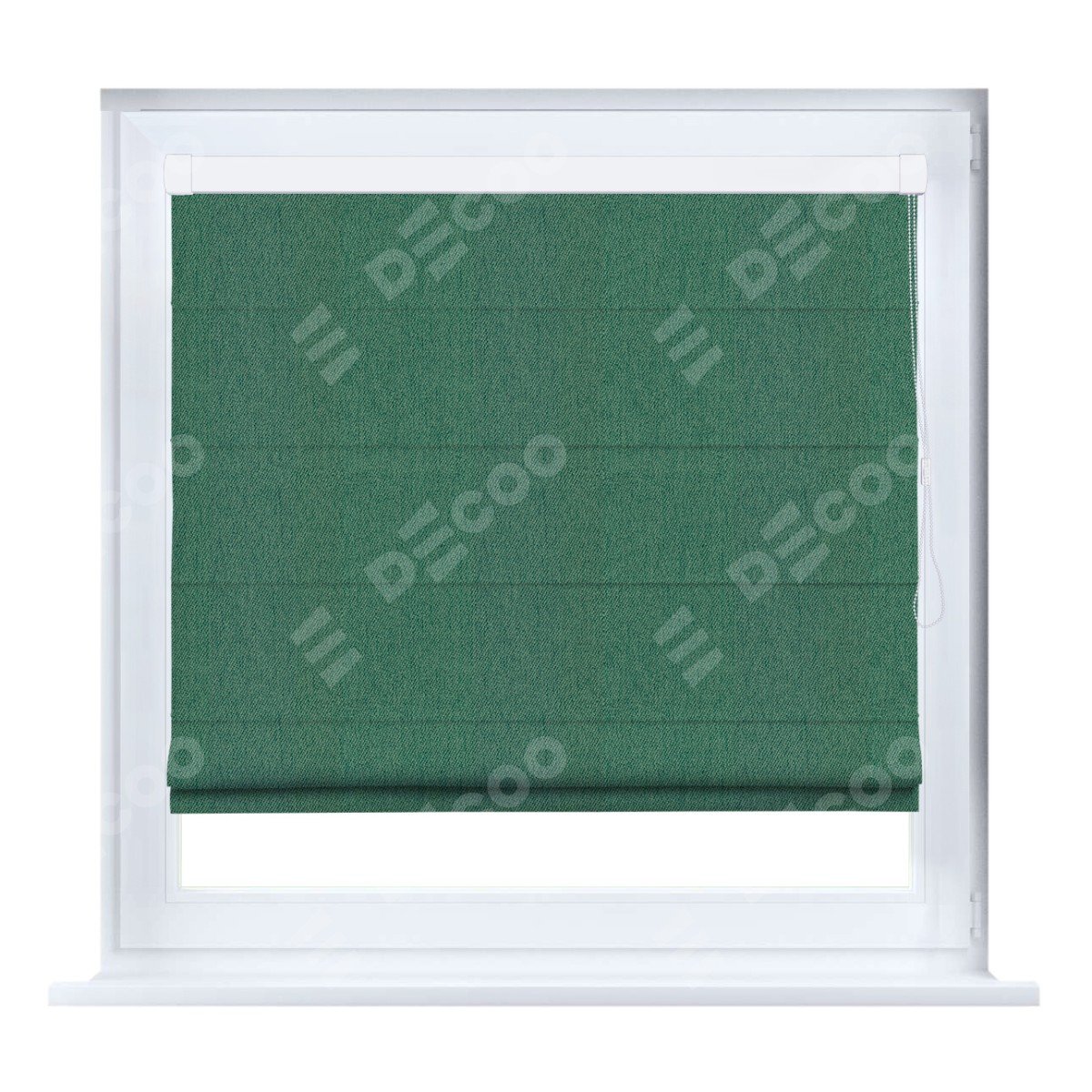 Римская штора кассетного типа, производителя «Cortin», устанавливается только на пластиковые окна и прилегает к стеклопакету, пошита из ткани твид блэкаут зелёный, артикул 21589.