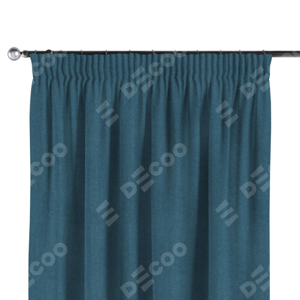 Комплект прямых штор, от производителя «Cortin», пошиты из ткани лён блэкаут синий, артикул ткани 69528. С изнаночной стороны в верхней части штор пристрачивается шторная лента с декоративными складками «Карандаш». Для создания элегантных складок прямые шторы шьются по стандарту с коэффициентом 1:2 (на 100 см. ширины проёма 200 см. ширины ткани).