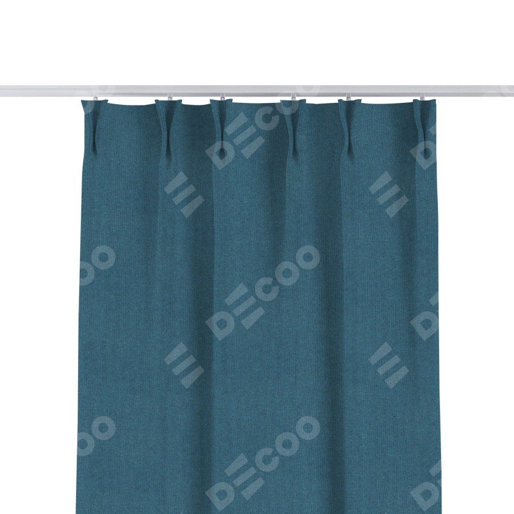 Комплект прямых штор, от производителя «Cortin», пошиты из ткани лён блэкаут синий, артикул ткани 69528. С изнаночной стороны в верхней части штор пристрачивается шторная лента с декоративными складками «Кустик». Для создания элегантных складок прямые шторы шьются по стандарту с коэффициентом 1:2 (на 100 см. ширины проёма 200 см. ширины ткани).