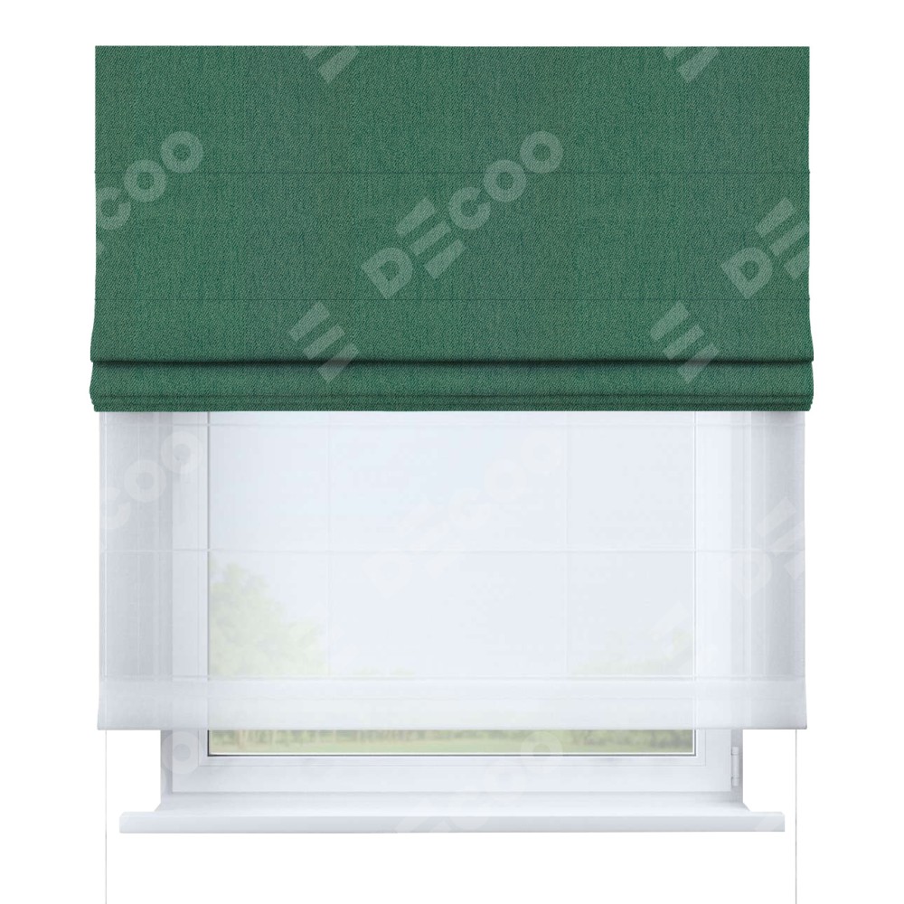 Римская штора день-ночь производителя «Cortin», используется для проёма, пошита из двух полотен, с лицевой стороны твид блэкаут зелёный
