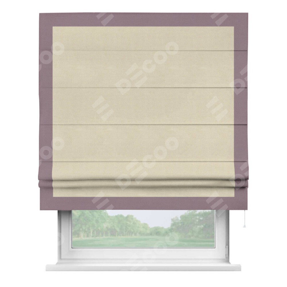 Римская штора производителя «Cortin», используется для проёма, пошита из ткани блэкаут однотонный бежевый, артикул ткани 13125. Отделка шторы кантом «Чесс», ткань для канта используется из блэкаута однотонного разной расцветки на выбор. Имеет универсальный механизм и подходит для монтажа: на потолок, на стену и в нишу.