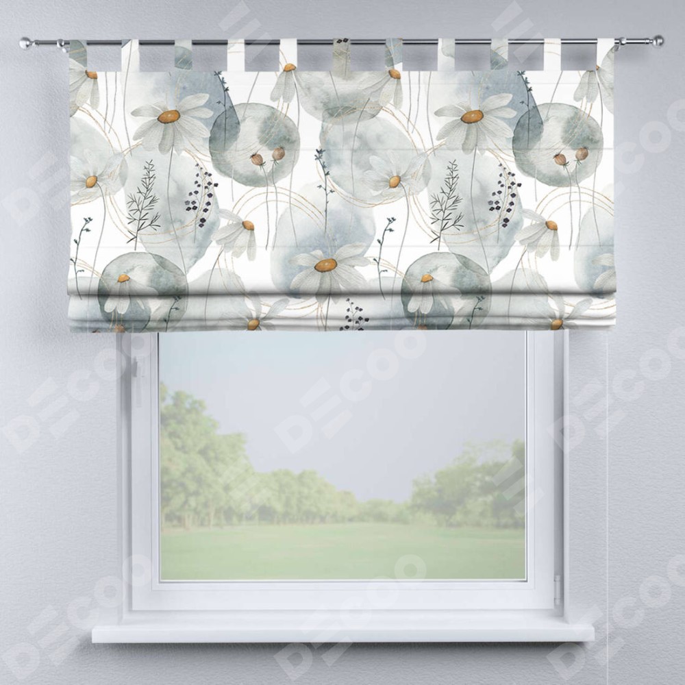 Римская штора производителя «Cortin», используется для проёма, пошита из ткани блэкаут с нанесением сублимационной печати «Ромашки акварель». Данная модель пошита на петлях, комплектуется на выбор круглым карнизом и подходит для монтажа на стену. Римская штора на петлях имеет простую систему регулировки высоты, отличительным преимуществом данной модели является простой способ монтажа. Достаточно повесить ее на трубу и штора готова!