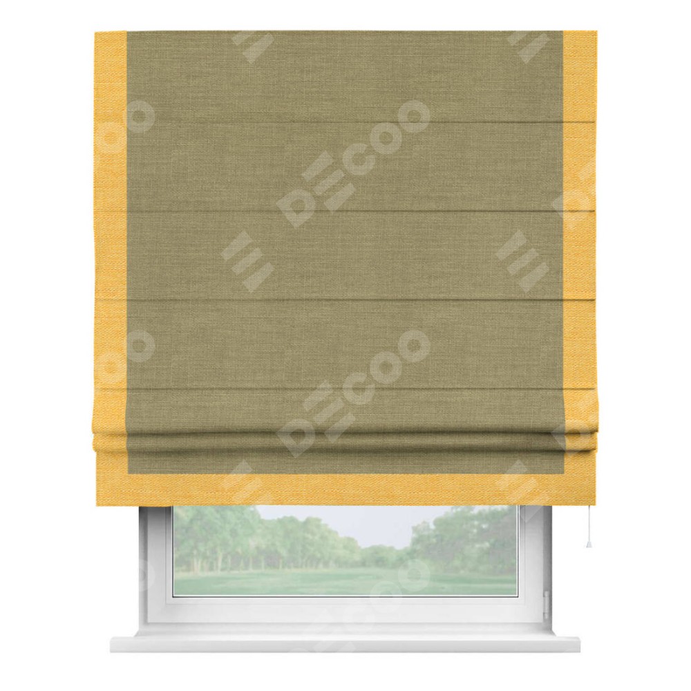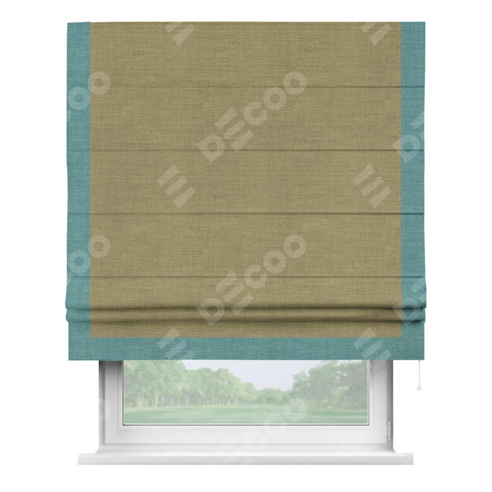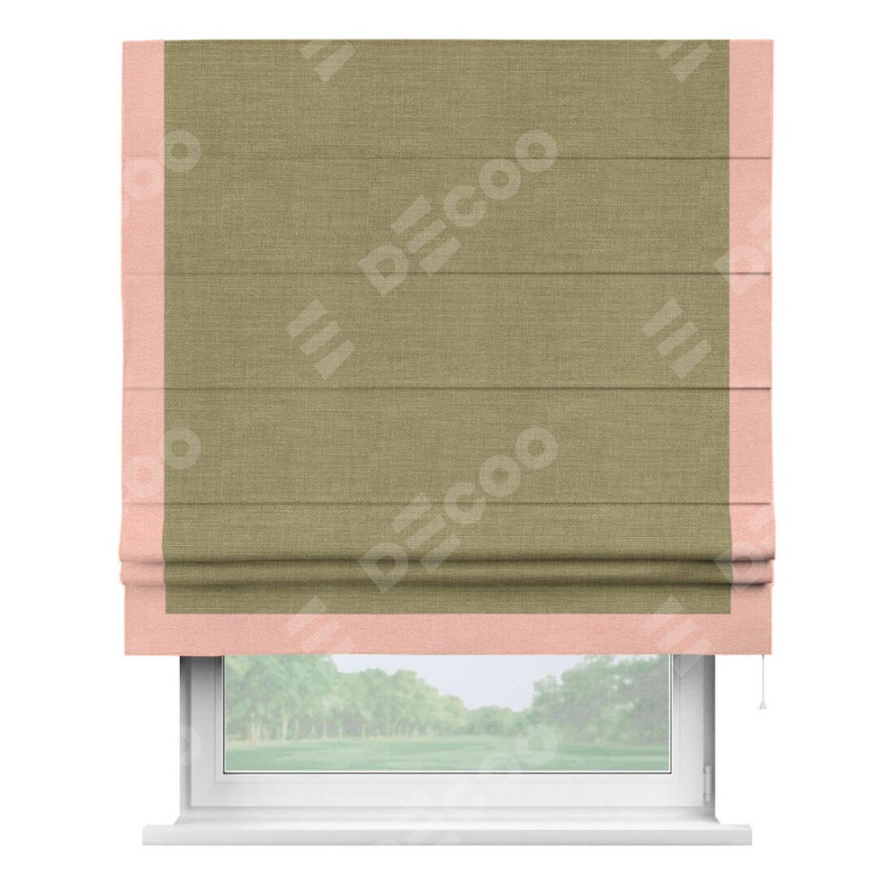 Римская штора производителя «Cortin», используется для проёма, пошита из ткани лён коричневый, артикул 7443. Отделка шторы кантом «Виктория», ткань для канта используется из льна разной расцветки на выбор. Имеет универсальный механизм и подходит для монтажа: на потолок, на стену и в нишу.