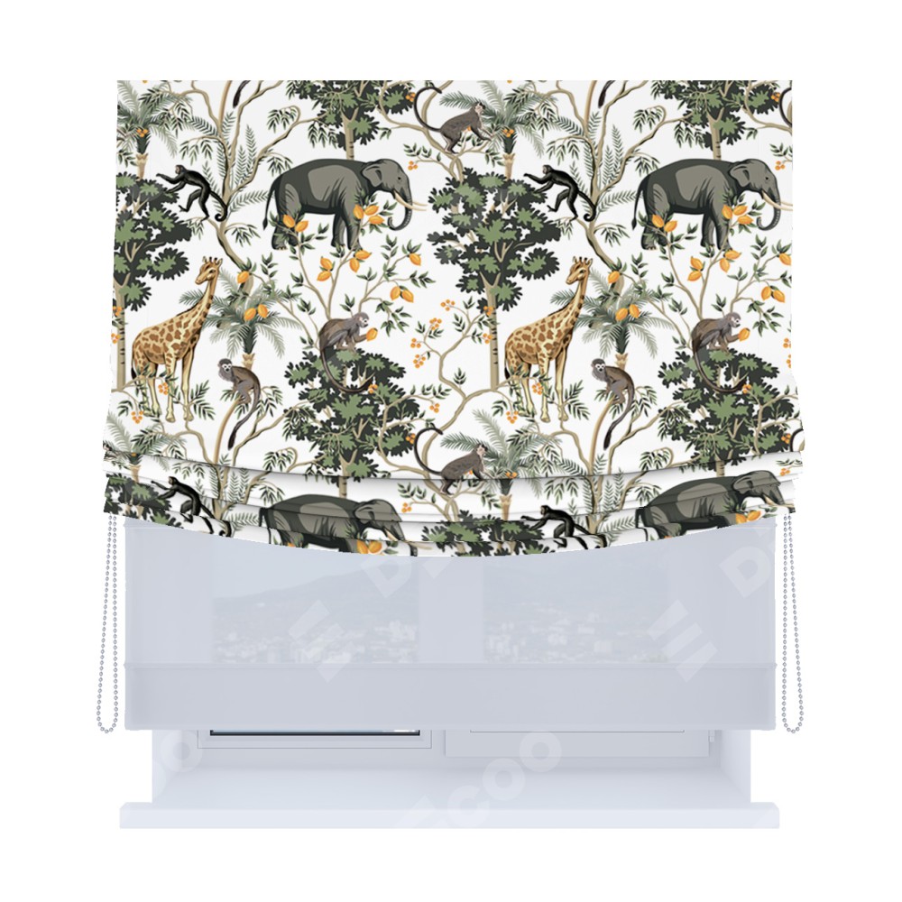 Римская штора день-ночь производителя «Cortin», используется для проёма, пошита из двух полотен, с лицевой блэкаут с нанесением сублимационной печати «Африканские равнины», вторая ткань тюль (по стандарту комплектуется тюль белого цвета артикул V-01). Имеет универсальный механизм и подходит для монтажа: на потолок, на стену и в нишу. Удобное управление каждой шторой отдельно.