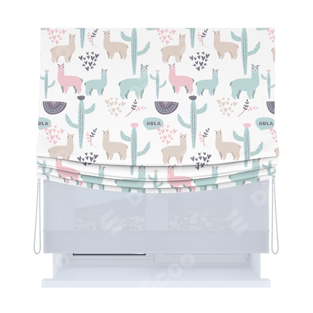 Римская штора «Кортин», день-ночь с мягкими складками, «Милый лама»