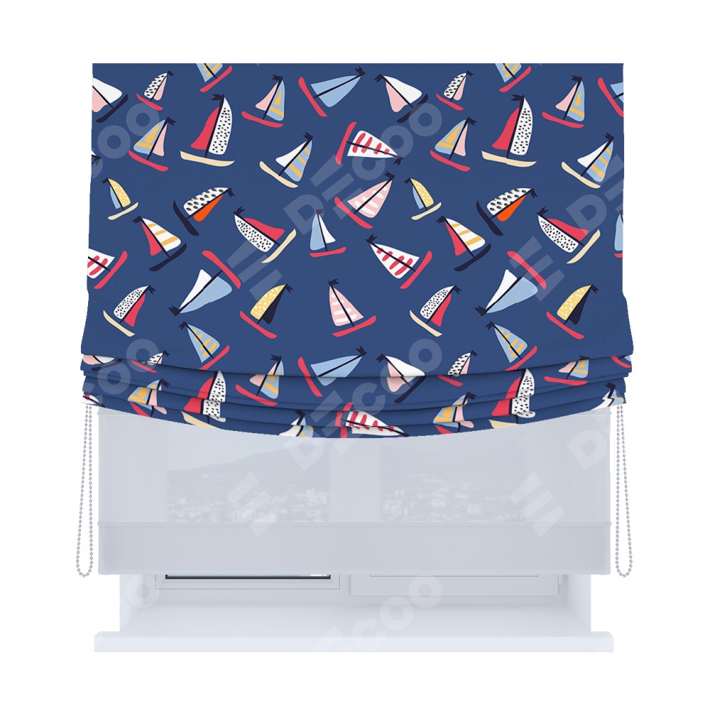 Римская штора «Кортин», день-ночь с мягкими складками, «Морское приключение»