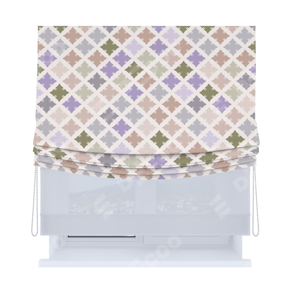 Римская штора день-ночь производителя «Cortin», используется для проёма, пошита из двух полотен, с лицевой блэкаут с нанесением сублимационной печати «Фигурные плитки», вторая ткань тюль (по стандарту комплектуется тюль белого цвета артикул V-01). Имеет универсальный механизм и подходит для монтажа: на потолок, на стену и в нишу. Удобное управление каждой шторой отдельно.