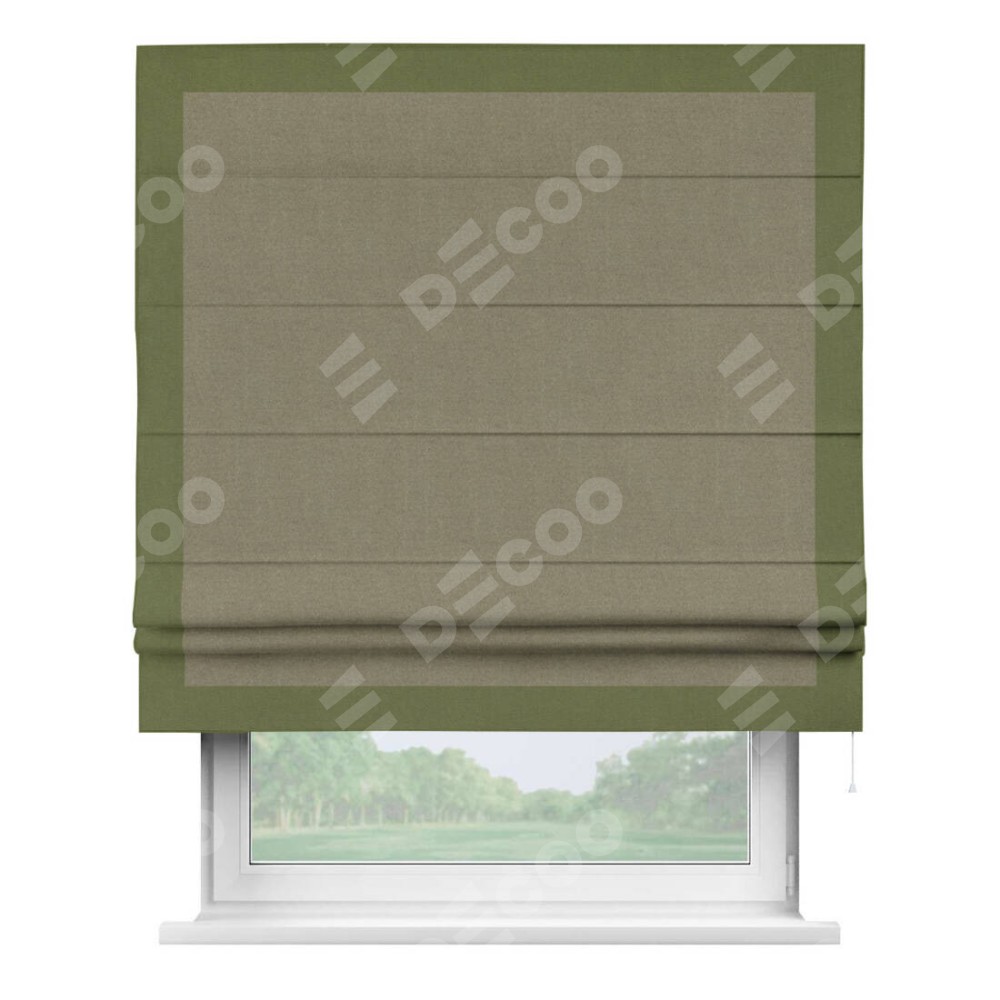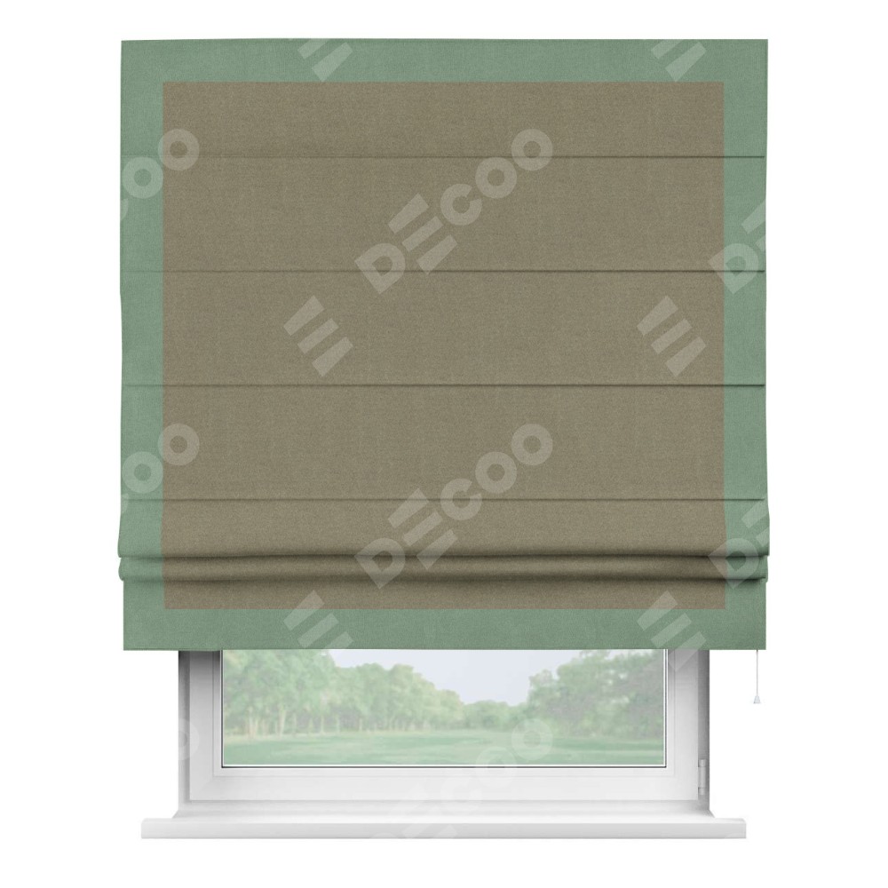 Римская штора производителя «Cortin», используется для проёма, пошита из ткани лён блэкаут бежевый, артикул 69435. Отделка шторы кантом «Чесс», ткань для канта используется из льна разной расцветки на выбор. Имеет универсальный механизм и подходит для монтажа: на потолок, на стену и в нишу.